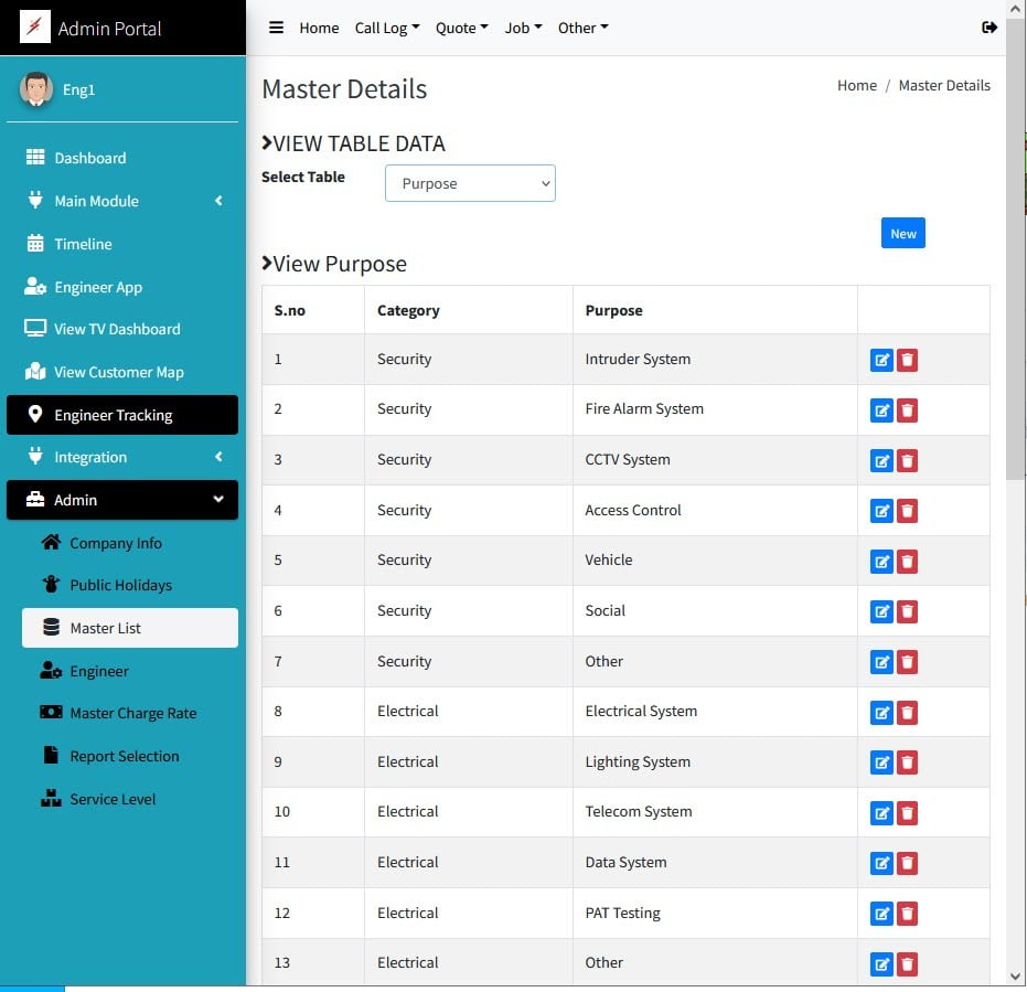 Custom Categories and System types can now be maintained and created when entering new Installations, Jobs, Quotes and Calls details in both the Engineering and Admin Cloud Applications. This allows users the flexibility of creating any system type for contract and service management.