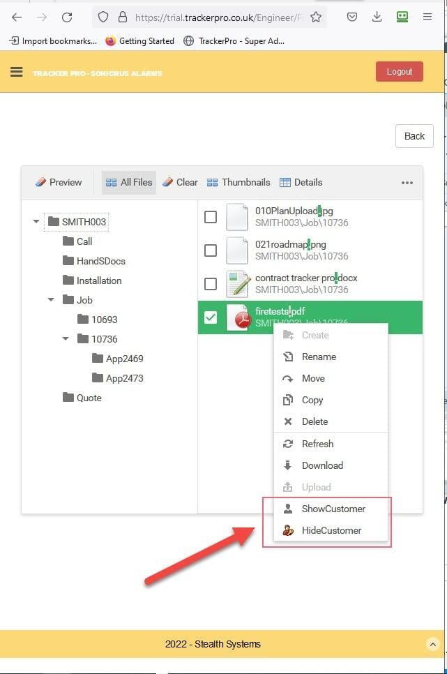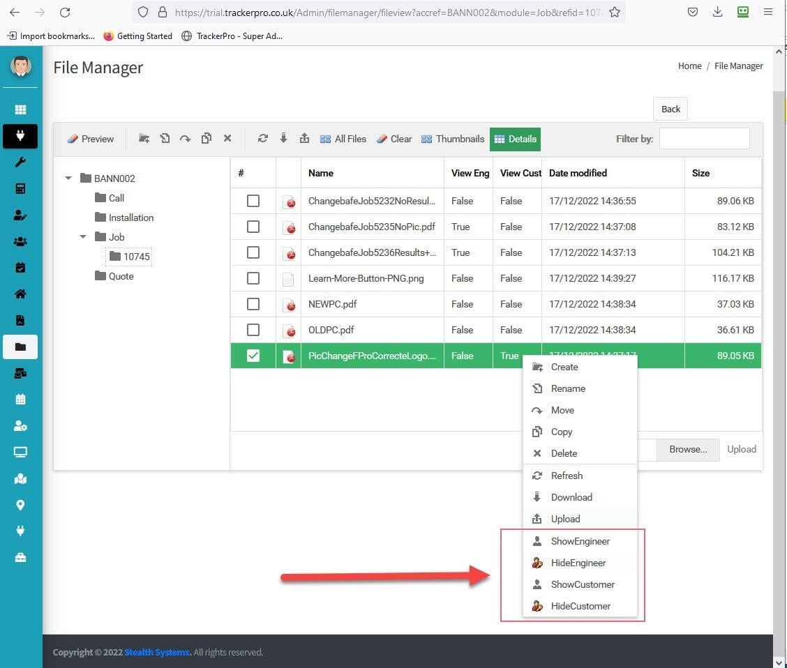 These files are subsequently hidden or visible to your Engineers and Customers.