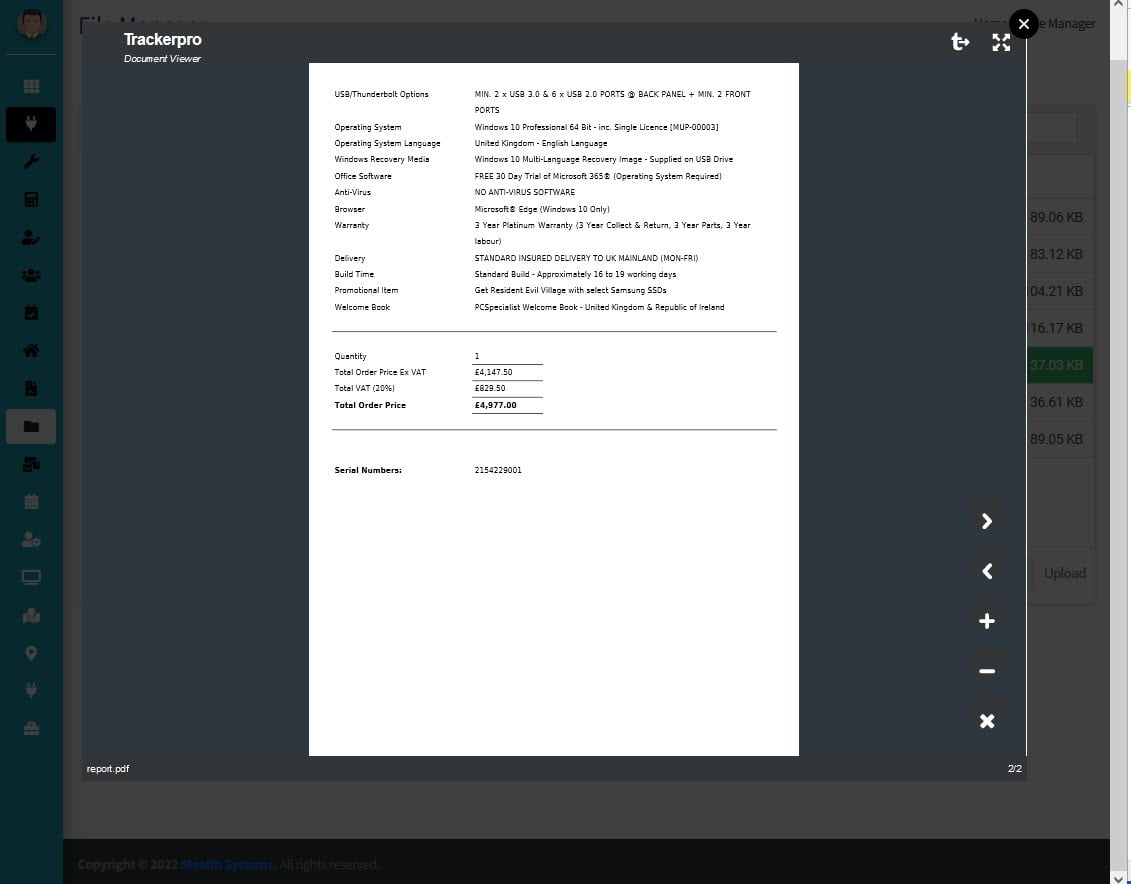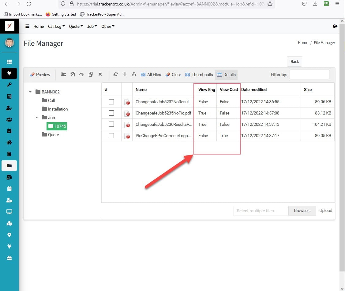 This facility enables file sharing on native Azure Cloud Storage representing an enhancement to our Cloud Applications in addition to making the Tracker Pro for Windows Application truly Serverless. Local Filing cabinet facilities in the Windows Application will be phased out in the coming weeks.