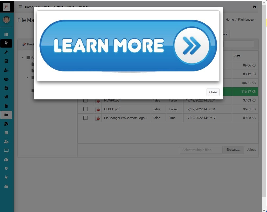 Files can be added and flags set in the Admin and Engineer Cloud Applications controlling what your engineers and customers can see, view and load.